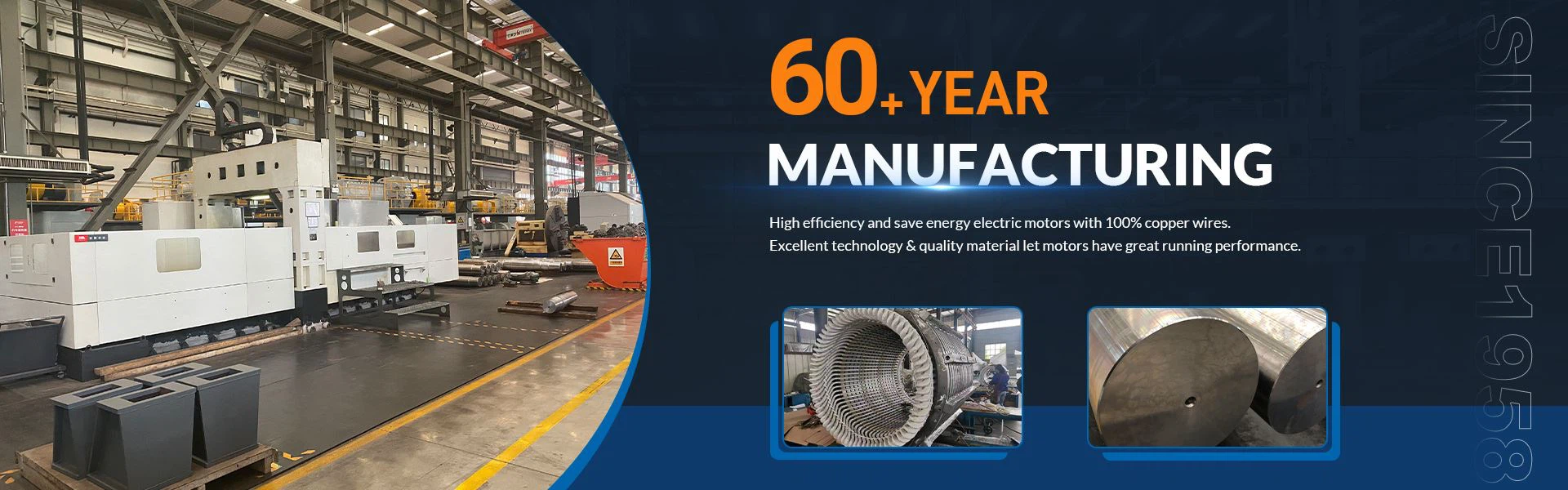 Виробник електродвигунів Wingo Star був заснований у 1958 році. Наша фабрика займає площу понад 260, 000 квадратних метрів, проектна та виробнича потужність може досягати 5 мільйонів кВт. Асортимент продукції: двигуни змінного струму, двигуни постійного струму, синхронні двигуни, вибухозахищені двигуни, двигуни Permanent Magic, генератори тощо.
